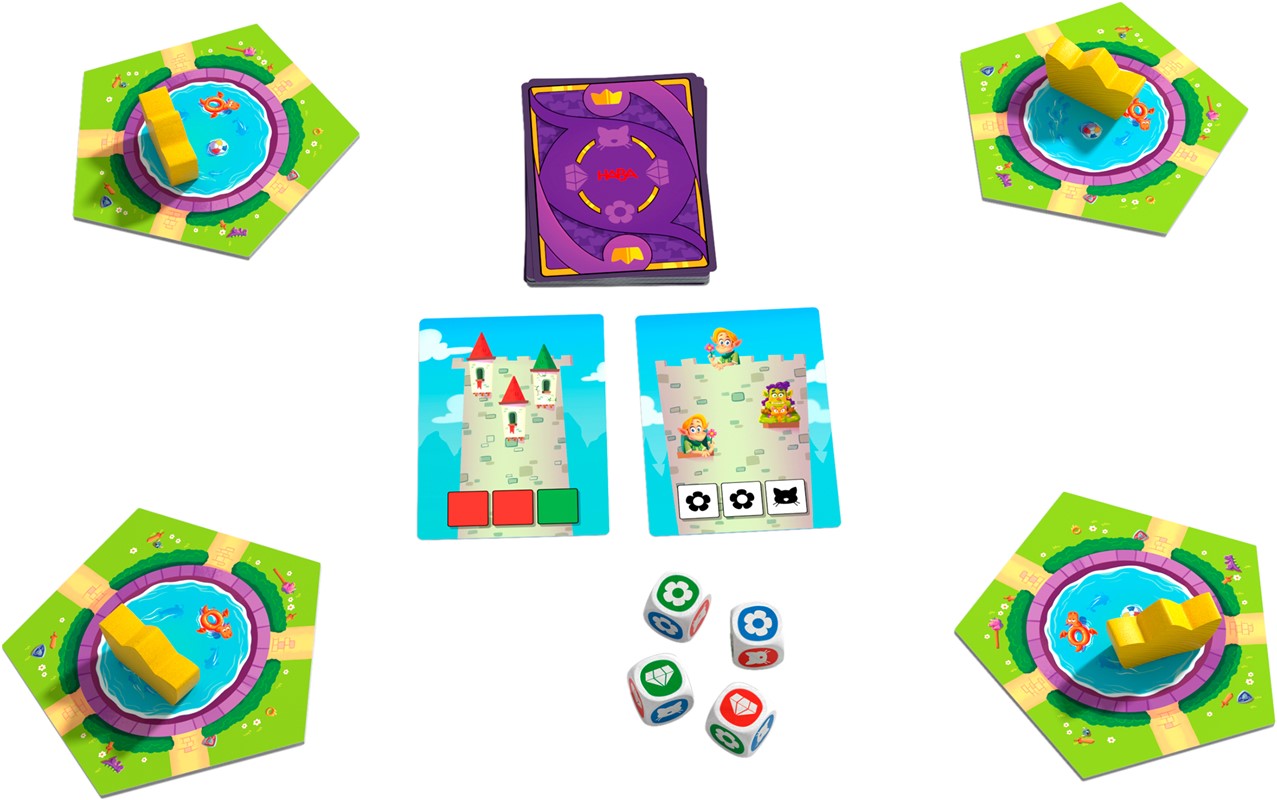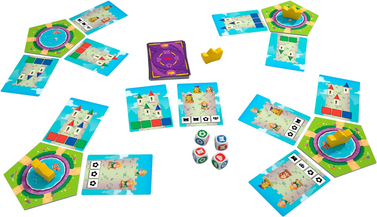 Un nuevo Rey de los Dados va a ser ¡coronado! Quien termine su castillo primero, con un poco de suerte tirando los dados y las tácticas correctas, será coronado Rey de los dados y gana el juego. Versión infantil del clásico juego de dados de HABA.